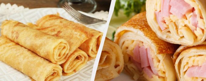 Clătite umplute – un fel de mâncare universal care nu devine plictisitor, indiferent de câte ori este pregătit. Ele sunt atât hrănitoare, cât și simplu de preparat. Vă sugerăm să faceți rulouri uimitoare cu brânză și șuncă – o astfel de umplutură pentru clătite este cea mai populară în restaurante. Rețeta lor va deveni cu siguranță favorita ta.